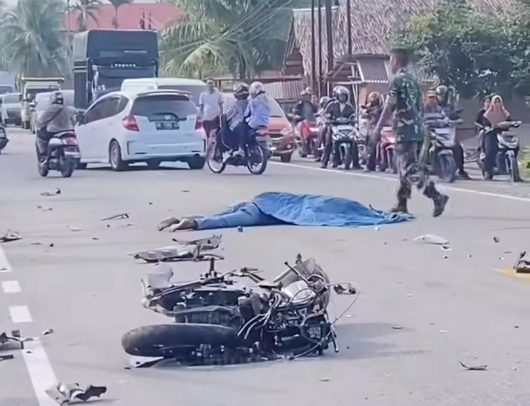 Sumbarpress, Padang Pariaman – Kecelakaan maut kembali terjadi dan menewaskan 1 pengendara sepeda motor di Jalan lintas Padang – Bukittinggi tepatnya di Sicincin. Kecelakaan tersebut melibatkan 2 speda motor dan 1 bus yang saling berlawanan arah.